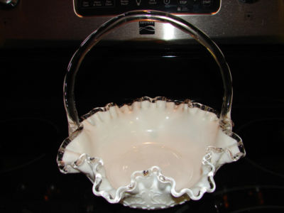 Title (ebay affiliate link): VINTAGE~FENTON~MILKGLASS RUFFLED BASKET~RARE~MUST SEE~HIGHLY COLLECTIBLE~RETIRED