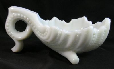 Antique Milk Glass Swirly BEADED Shell PIPE HOLDER