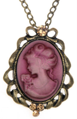 Title (ebay affiliate link): Red Cameo Antique Gold Tone Flower Pendant Necklace