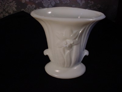 Vintage Akro Agate White Milk Glass Flowered Vase