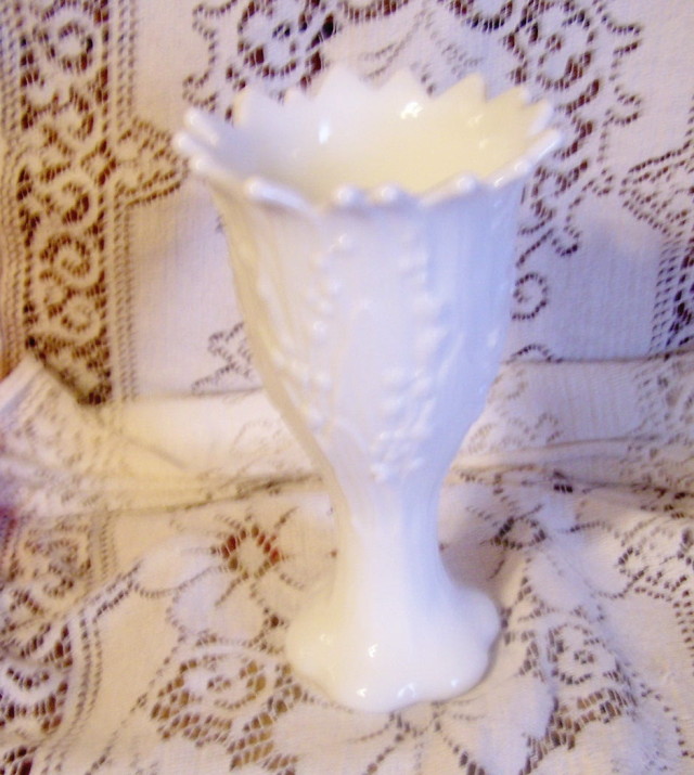 Westmoreland Milk Glass Lily of Valley Footed Vase