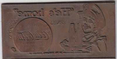 COCA-COLA PRINTING PLATE HE"S HOME 4 x 2 INCH 1945 COPPER AND LEAD