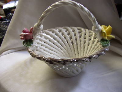 Capo-Di-Monte Vintage Ceramic Basket with Roses