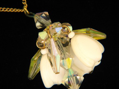 VINTAGE WHITE CARVED MILK GLASS CRYSTAL GOLD NECKLACE