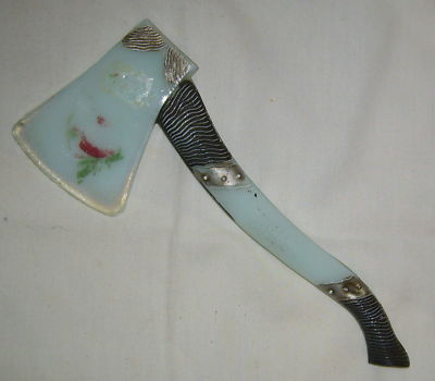 Title (ebay affiliate link): ANTIQUE EAPG WHITE OPAQUE MILK GLASS HAND PAINTED HATCHET SOUVENIR MOMENTO