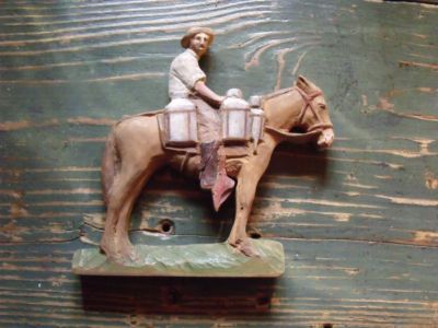 Older Vintage Carved Wood Folk Art Figure Farmer On Horse