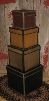 Title (ebay affiliate link): FOUR Primitive Stacking Pantry BOXES-Country Storage Decor For Wood Table/Bench