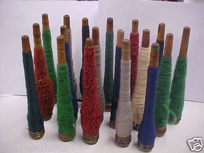 18 EARLY WOOD WOOL BOBBINS FROM FALL RIVER KNITTING MILLS..