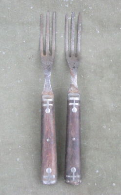 Civil War era Three Tine Forks Wood Handle w/ pewter fancy work , No Reserve
