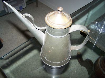 Title (ebay affiliate link): Vintage Oil Can Extreme Rare Shape With Long Spout Brass Lid Pewter? Welded