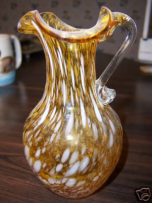 Hand Made Blown Amber Milk Glass Pitcher Vintage Bottle