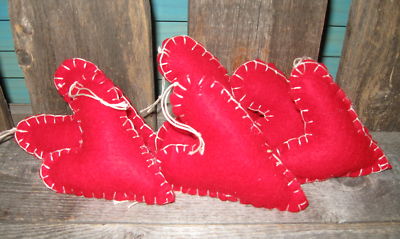 Title (ebay affiliate link): Primitive Handmade Felt RED Heart Ornaments Ornies SET 6 OOAK Bowl Fillers