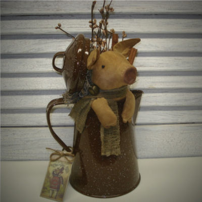 Title (ebay affiliate link): PRIMITIVE FOLK ART HANDMADE COUNTRY PIG ORNIE DOLL BROWN ENAMELWARE COFFEE POT
