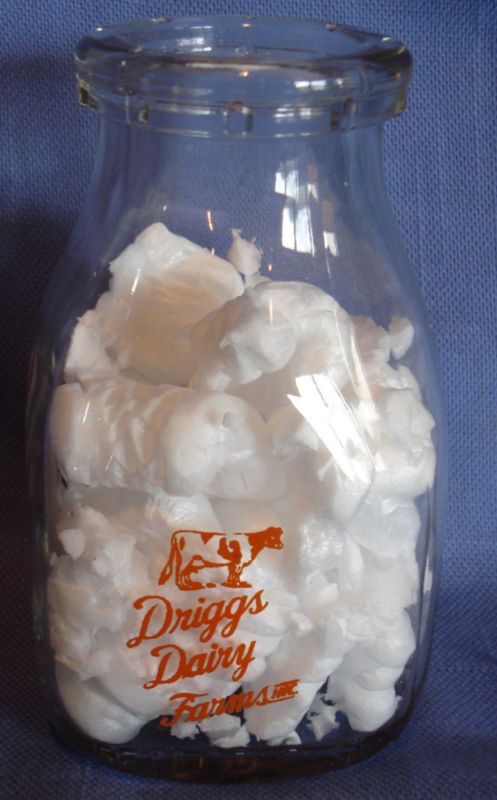 ~VINTAGE SMALL GLASS MILK BOTTLE DRIGGS DAIRY FARMS