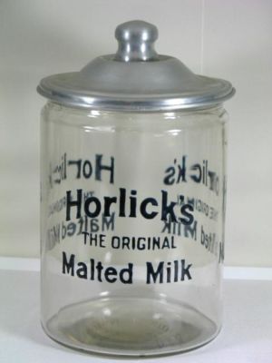 Title (ebay affiliate link): Rare 1930s HORLICKS The Original MALTED MILK Soda Fountain Glass Canister