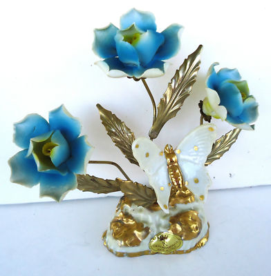 Title (ebay affiliate link): ESTATE vintage BEAUTIFULL blue roses & butterfly CAPODIMONTE signed A CALLE'