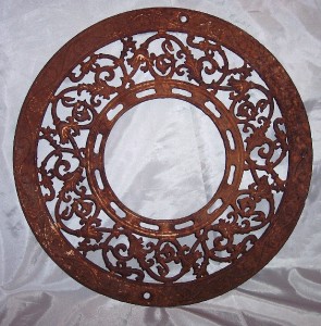 Title (ebay affiliate link): ANTIQUE CAST IRON ORNATE CHIMNEY WOOD STOVE PIPE GRATE