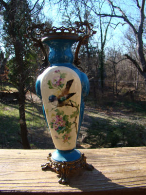 Title (ebay affiliate link): BEAUTIFUL SIGNED PORTRAIT VASE PORCELAIN ORNATE SPELTER FRAME - CLAW FEET