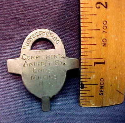AMHERST ST GARAGE & TAXI MILFORD NH ANTIQUE KEY FOB
