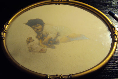 Title (ebay affiliate link): Antique Drawing? Little Girl Sleeping With Her Doll And Teddy