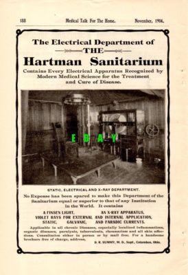 Title (ebay affiliate link): 1904 HARTMAN SANITARIUM AD-ELECTRICAL & XRAY DEPT-COLUMBUS,OH