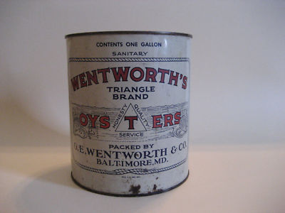 Title (ebay affiliate link): Wentworth's Oysters Can, Packed By: O.E. Wentworth & Co. Baltimore, MD.