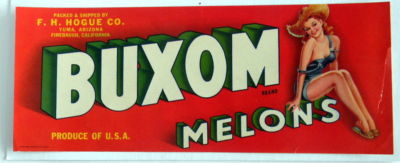 Title (ebay affiliate link): Vintage Buxom Melons Crate Label, F. H. Hogue Co. (Cheesecake)