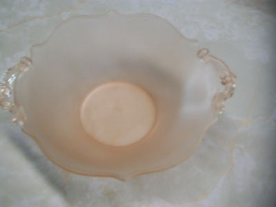 DEPRESSION GLASS - PINK FROSTED BOWL WITH HANDLES-Christmas holiday sale