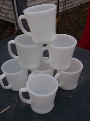 7 Vintage Fire King White Milk Glass Coffee Mugs cups