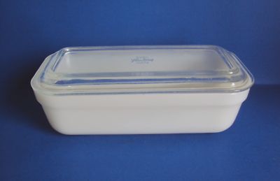 VINT. BEIGE MILK GLASS FIRE KING OVEN WARE FRIDGE DISH