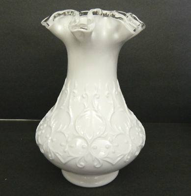 Title (ebay affiliate link): FENTON SILVERCREST MILK DEPRESSION GLASS SPANISH LACE RUFFLED VASE