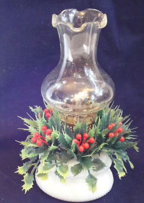 Title (ebay affiliate link): 60s VTG Hong Kong Milk Glass&Xmas Holly Oil Kerosene Miniature Lamp