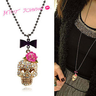 Title (ebay affiliate link): Retro Style Antique Bowknot Rose Skull Necklace Pendant