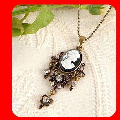 Title (ebay affiliate link): White Crystal Vintage ST Antique Gold GP CAMEO pendant necklace n1468