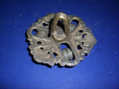 Title (ebay affiliate link): ANTIQUE ORNATE CAST BRONZE OIL LAMP PULLEY CANOPIE