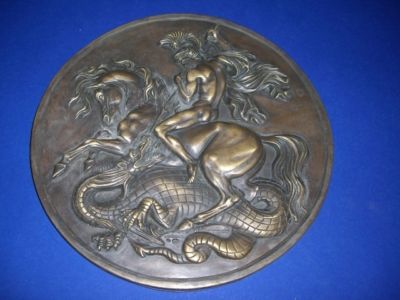 Title (ebay affiliate link): ST. GEORGE SLAYING THE DRAGON BRONZE WALL RELIEF