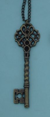 vtg Antique bronze pretty Skeleton Key Charm Pendant chain necklace brass L= 30"