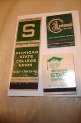 3-VINTAGE Michigan State Spartans Match Books & 1965 National Champs Keychain