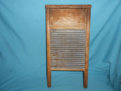 Title (ebay affiliate link): ANTIQUE WOOD PRIMITIVE WASHBOARD FINE METAL RIBBED BOX JOINT CORNERS
