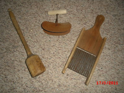 Primitive Wood Kitchen Utensils- 14" Masher. Small kraut Kutter, 2 Blade Chopper