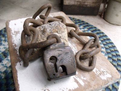Title (ebay affiliate link): Early Primitive Antique Blacksmith Forged Iron Chain With Bronze Lock