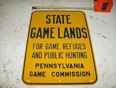 Title (ebay affiliate link): VINTAGE ORIGINAL PENNSYLVANIA STATE GAME LANDS TIN METAL SIGN NEVER USED HUNTING