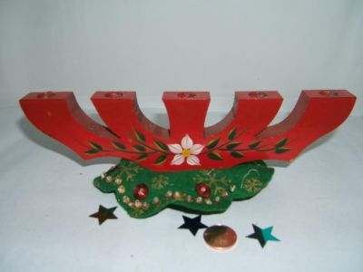Title (ebay affiliate link): Antique Hand Made Rhinestone and Wood 5 Hole Candle Holder "Made in Sweden"
