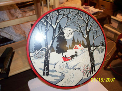 Title (ebay affiliate link): BOLD ANTIQUE XMAS COOKIE TIN- 1920'S USED- NICE CONDITION- GREAT GRAPHICS