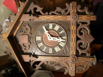Title (ebay affiliate link): ANTIQUE BLACK FOREST INLAID CUCKOO CLOCK BY KUEHL AS IS