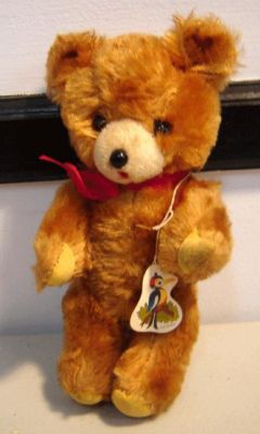 | Vintage 1960s JOINTED TEDDY BEAR unused w/ tag Pecker |