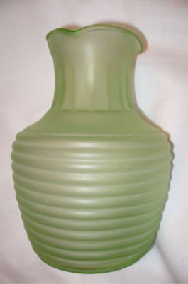 Title (ebay affiliate link): MANHATTAN RIB GREEN SATIN DEPRESSION GLASS BEVERAGE BOTTLE FRIGIDAIRE PREMIUM