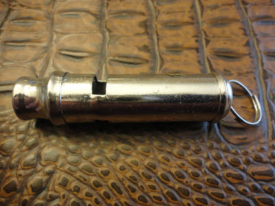 Title (ebay affiliate link): VINTAGE METAL TOY WHISTLE FROM THE 1950's or 1960's NEW OLD STOCK.