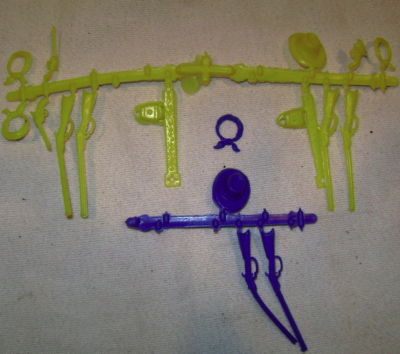 Title (ebay affiliate link): VINTAGE 1950's, 60's PLASTIC COWBOY HATS & GUNS ON TREES FROM FORT APACHE SET