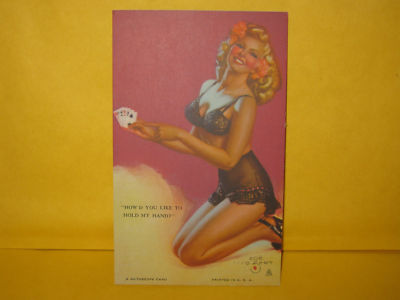 Title (ebay affiliate link): VINTAGE ZOE MOZERT MOTOSCOPE CARD (HOWD YOU LIKE TO HOLD MY HAN) NICE CONDITION